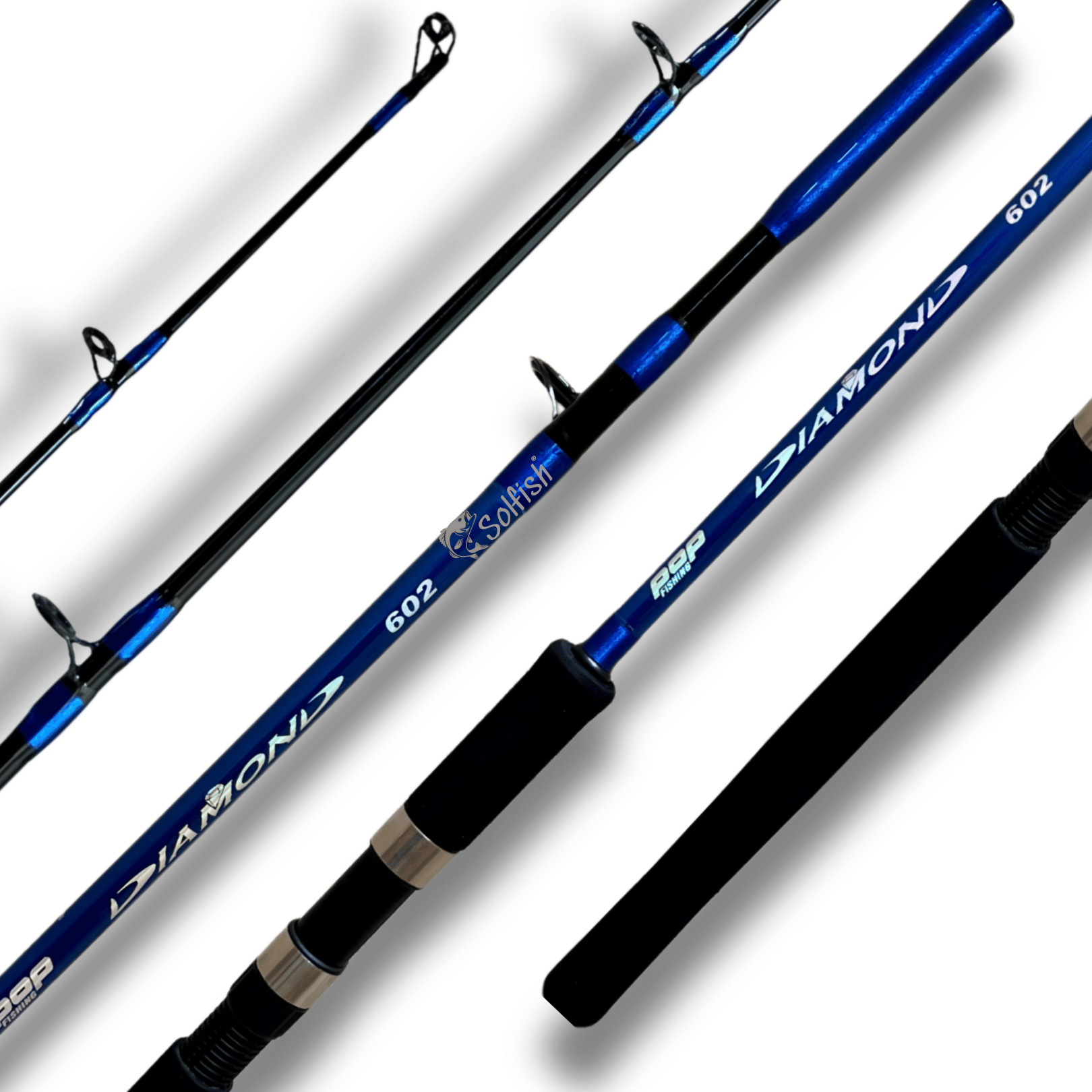 A DIAMOND é indicada tanto para a pesca embarcada em rios e mar quanto para lagos e pesqueiros, possui uma ação rápida, cabo bem dimensionado EVA de alta densidade com uma excelente empunhadura e tem todos os seus passadores reforçados em pata dupla.